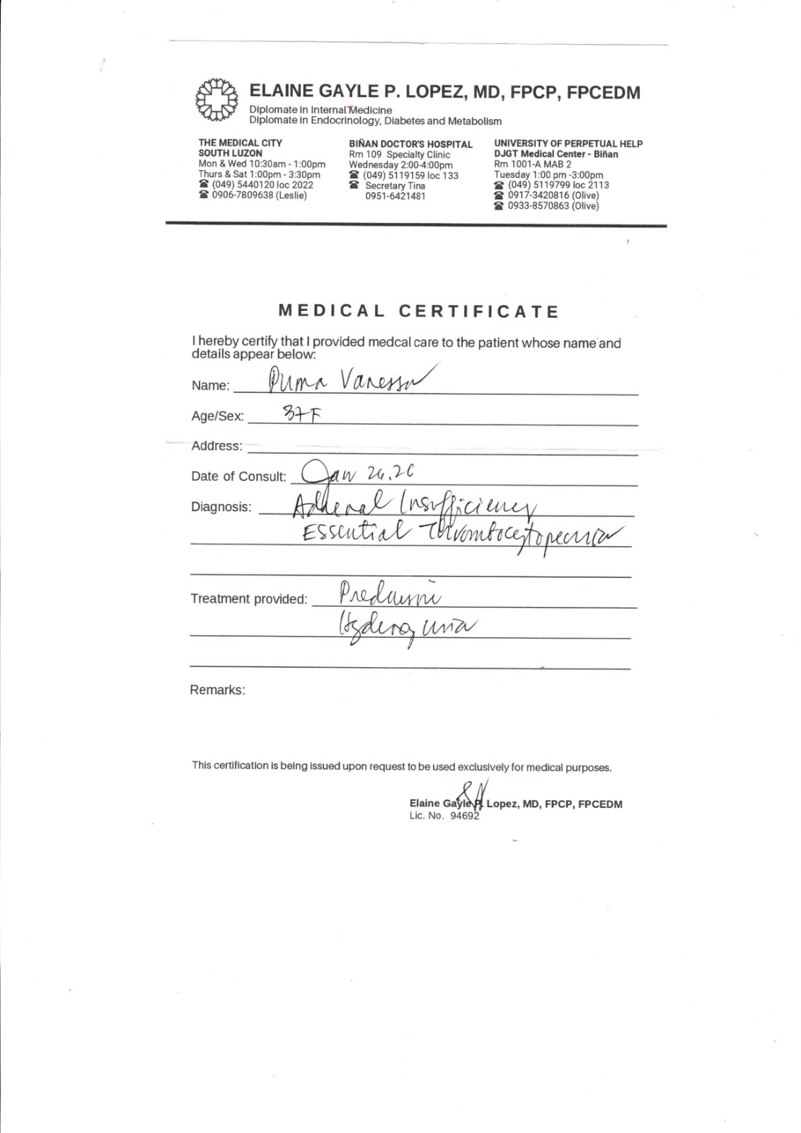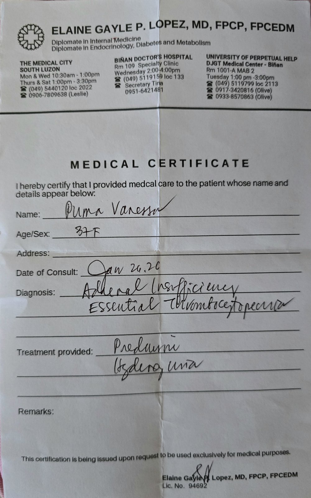 Since November 2024, I have been fighting two rare and life-threatening conditions: Addison’s Disease and Myeloproliferative Neoplasm (MPN). My treatment requires lifelong hormone therapy, oral chemotherapy, regular lab tests, and specialized imaging to prevent serious complications. Despite these challenges, I serve as the Philippines Ambassador for the Addison’s Self-Help Group (ADSHG) UK, advocating for early diagnosis and better care for rare disease patients. I work as an online seller of bags and gold, but the high cost of treatment is overwhelming.